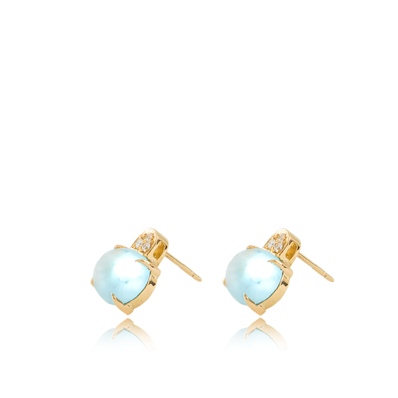 A trio of diamonds set in 18k Yellow Gold crown a 3ct hand cut Blue Topaz creating an elegant pair of everyday earrings.