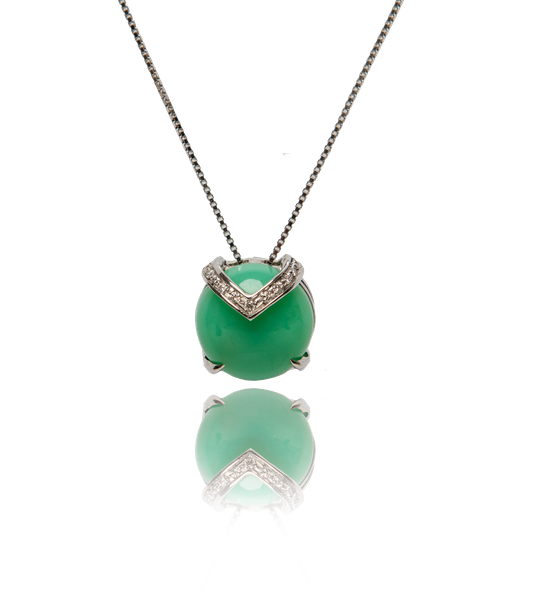 Claudia White Diamond Collar Chrysoprase Pendent